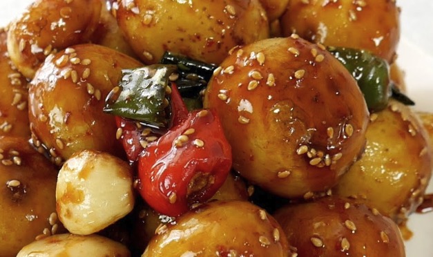 - 물이 거의 다 졸아들면 물엿 한 큰술 넣어 윤기를 내고 깨를 뿌리면 완성입니다.
