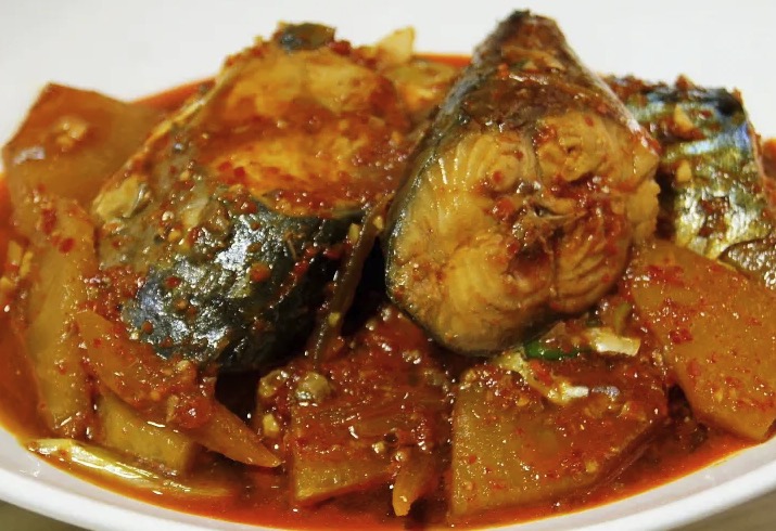 - 얇게 썬 무를 고등어 조림 위에 뚜껑 대신 올려주세요