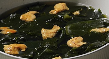 1. 미역은 4인분 분량을 찬물에 담궈 20분 정도 불려서 준비해주세요.