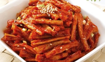 - 물 빠진 무말랭이는 멸치 액젓, 간장을 넣고 버무려 10분정도 방치합니다.