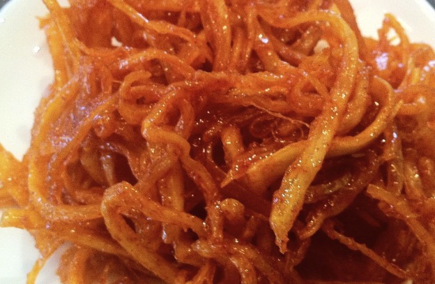 - 올리고당과 깨소금 넣기: 끓기 시작한 진미채 볶음에 올리고당 1.5큰술을 넣고 깨소금을 뿌리면 완성된다.
