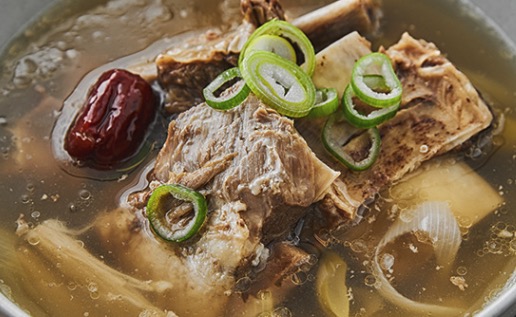 3. 냄비에 데쳐낸 갈비, 2리터의 물, 무, 대파, 마늘을 넣고 센불에서 30분간 끓인 다음 약불로 줄여 1시간 더 끓입니다.
