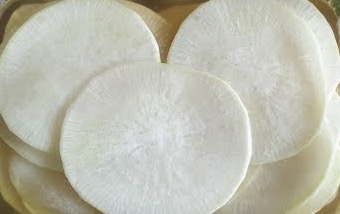 - 무를 깨끗하게 씻고, 채칼로 얇게 통 썰기해주세요.