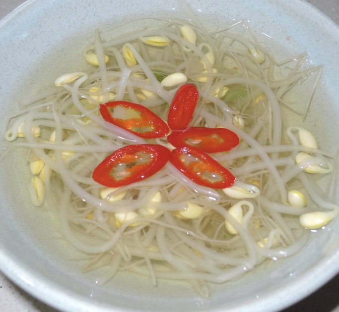 - 콩나물 준비: 콩나물의 껍질과 누른 부분을 제거한 후, 몇 번 세척하고 소쿠리에 받친다.